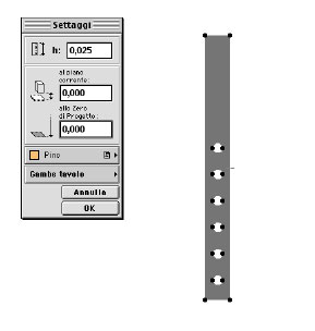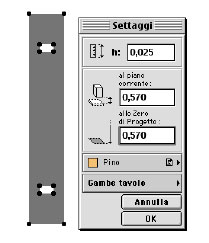 Nel primo campo in questo caso inseriamo la misura della larghezza della gamba, impostiamo la quota, il materiale è quello precedentemente impostato e scegliamo il lucido a cui deve essere assegnato e confermiamo