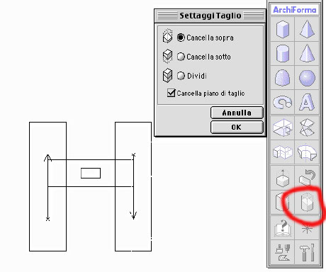 In questo passaggio andiamo ad utilizzare un nuovo strumento di ArchiForma: quello per il taglio degli elementi.