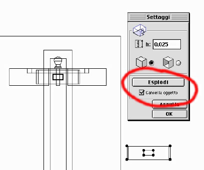 In certi casi se la nostra figura di partenza è formata da più archi, nella esplosione che ci riporta alla situazione di partenza ci ritroviamo con una spezzata di sole linee (in questa situazione specifica la sezione che genera il piolo): conviene farsi una copia della nostra sezione al fine di avere sempre una copia originale per fare eventualmente delle prove al fine di trovare quella che più ci vada bene.