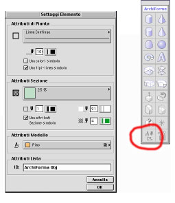Apriamo ArchiForma e dalla palette, per prima cosa, vado a controllare e nel caso a impostare i settaggi degli elementi di ArchiForma: colore della linea, materiali..
