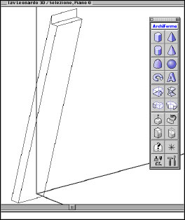 Adesso dobbiamo ruotarlo: selezioniamo l’oggetto ottenuto (ArchiCAD lo riconosce come elemento di libreria), e clicchiamo sullo strumento rotazione dalla palette di ArchiForma.