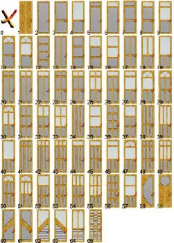 Possiamo scegliere tra otto tipi diversi di porta: foro vuoto, ad anta con apertura esterno, ad anta con apertura interna, “Francese”, scorrevole internamente al muro, scorrevole esterna , a libro, a vento.