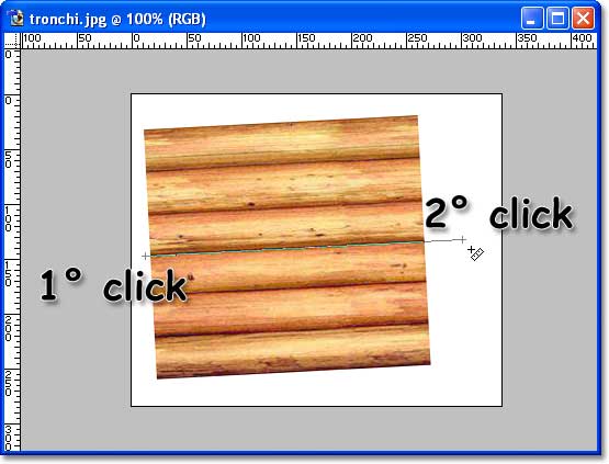 Per indicare l'entità della rotazione, è sufficiente tracciare una linea che indichi al programma l'orientamento dell'elemento da raddrizzare. Non importa se l'allineamento scelto è orizzontale o verticale, l'importante è seguire, con la nostra linea, l'orientamento attuale dell'immagine. Se necessario, è possibile correggere il posizionamento della linea, semplicemente trascinando gli estremi, senza cambiare strumento.