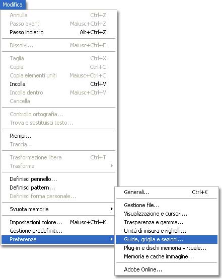 La sua visibilità si imposta con il comando Visualizza/Mostra/Griglia, mentre le sue caratteristiche si stabiliscono per mezzo del dialogo accessibile da Modifica/Preferenze/Guide, griglia e sezioni. Qui può essere utile impostare un valore, per la dimensione della griglia, abbastanza simile alla dimen-sione delle piastrelle; procedo per tentativi, ma l'operazione è resa più semplice dal fatto che le modifiche sono immediatamente visibili sulla finestra di lavoro, senza necessità di chiudere il dialogo. Ancora meglio: posso spostare l'origine direttamente su un angolo delle piastrelle, semplicemente facendo click nell'angolo in alto a sinistra della finestra, e trascinando fino al punto desiderato (devono essere visibili i righelli; se necessario usare il comando Visualizza/Righelli).