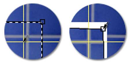 Se si ha un riferimento abbastanza vicino all'angolo da spostare, notate che l'entità dello spostamento della maniglia è molto simile; comunque occorre procedere spesso con aggiustamenti successivi, fino ad ottenere un risultato soddisfacente.