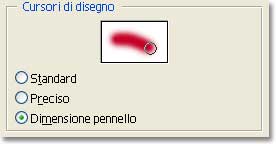 La "leggerezza" del tocco si ottiene riducendo il valore nel campo Esposizione, nella barra delle opzioni, in alto. Io mi trovo meglio a lavorare con l'opzione Dimensione pennello, impostata in Modifica/Preferenze/Visualizzazione e cursori. Solo in alcuni casi, imposto temporaneamente la modalità Preciso, attivando il Caps-lock (fissa-maiuscole) sulla tastiera.