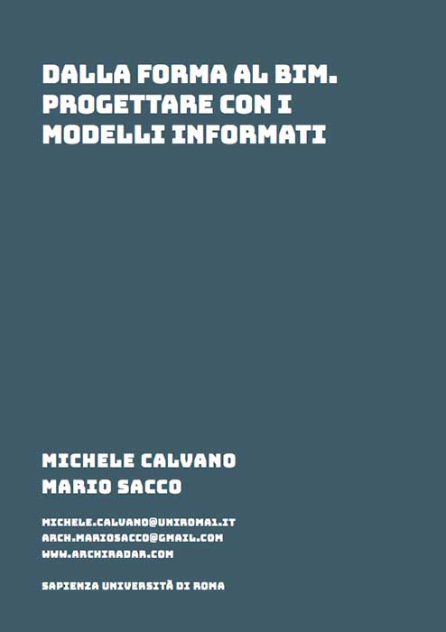 Questo contributo, realizzato da gli architetti Mario Sacco e Michele Calvano di ArchiRADAR, è stato presentato in occasione del Workshop "3DModeling&BIM. Applicazioni e possibili futuri sviluppi" che si è svolto a Roma presso la Facoltà di Architettura La Sapienza il 20 e 21 Aprile 2016 e che ha dato vita a una pubblicazione in formato elettronico che è possibile visionare e acquistare a questo link:  e-book