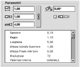 Nella prima riga devono essere indicati i materiali delle facce del prism_. nella seconda riga troviamo: n=numero dei nodi del bprism_; h=spessore di estrusione; radius=raggio di curvatura. Nella terza riga sono specificate le coordinate dei nodi ognuna delle quali è seguita dal proprio codice di mask per il quale vi rimando all'esauriente articolo di Avelino De Sabbata nel numero 11 di M/A Relais. Prendendo ispirazione dal tema di partenza dei parapetti circolari con altezza crescente vediamo di costruire un bprism_ parametrico che possa servire a quello scopo; vedremo poi che può essere utile anche per altri utilizzi.
