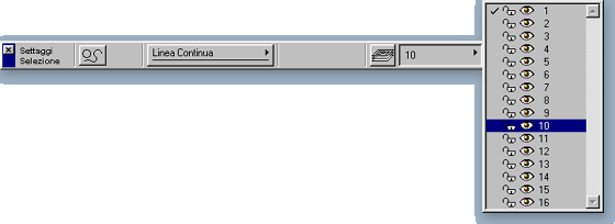 Ecco, qui è possibile disegnare con tutti gli strumenti bidimensionali (Linea, Arco/Cerchio, Spline, Retino, Hotspot, Figura, Testo) e utilizzare le tecniche e i comandi consueti, compreso il copia e incolla da altre finestre. Strumenti e comandi funzionano esattamente nel solito modo, l'unica differenza che noterete è che non ci sono i lucidi, o meglio non ci sono quelli normali. Per il simbolo degli oggetti sono comunque disponibili 16 lucidi appositi, che non hanno un nome, ma solo un numero, e che si chiamano "Frammenti". Funzionano anche questi in modo normale, e si possono scegliere dai soliti elenchi a comparsa, sia nelle finestre di settaggio degli strumenti che nella barra delle informazioni.