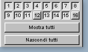 La visibilità dei singoli frammenti viene gestita per mezzo della serie di pulsanti posta sotto l'area di anteprima della finestra principale. Nell'esempio seguente sono attivi (e quindi i relativi frammenti sono visibili) i pulsanti di tutti i frammenti, tranne il 12 e il 16.