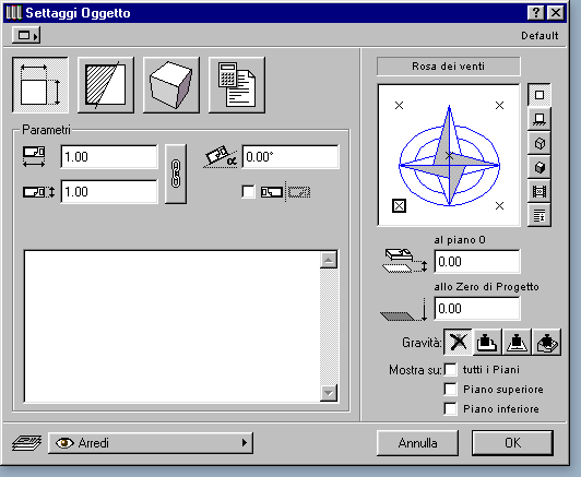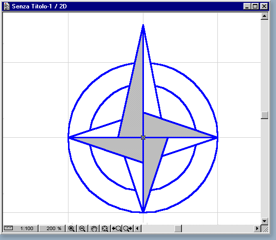 Per ora facciamo un semplice disegno, ad esempio una rosa dei venti, e registriamo l'oggetto con il normale comando Registra del menu Archivio. L'oggetto può essere registrato ovunque, ma la posizione migliore la cartella "00. Oggetti utente" all'interno della Libreria ArchiCAD.