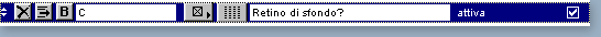 Questa riga verrà visualizzata anche nella finestra settaggi oggetto. Il testo descrittivo, che spiega all'utente il significato del parametro, deve essere digitato nella colonna Nome. Noi scriveremo "Retino di sfondo?". Il valore di questo parametro va ovviamente inserito nel campo Valore, ma questo campo è predisposto per l'inserimento di una misura... che fare? È sufficiente cambiare il Tipo parametro, agendo sul menu a comparsa, a destra della lettera C. Noi abbiamo bisogno di un valore tipo "ON/OFF", una casella di scelta, che in gergo si chiama "Valore Booleano".