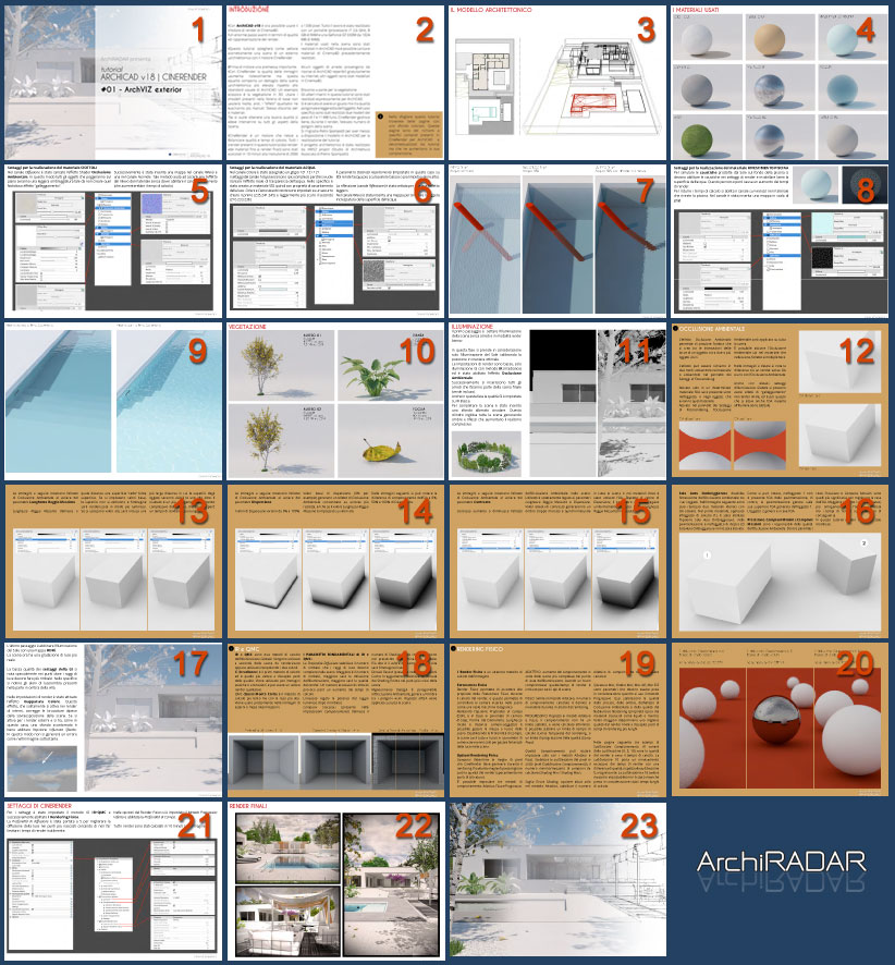 Questo tutorial è stato pensato per chi vuol cimentarsi con il nuovo motore di rendering contenuto in ArchiCAD 18 (Cinerender) e offre un valido supporto per orientarsi all'interno dei vari comandi e settaggi del programma, attraverso semplici spiegazioni e immagini di esempio.