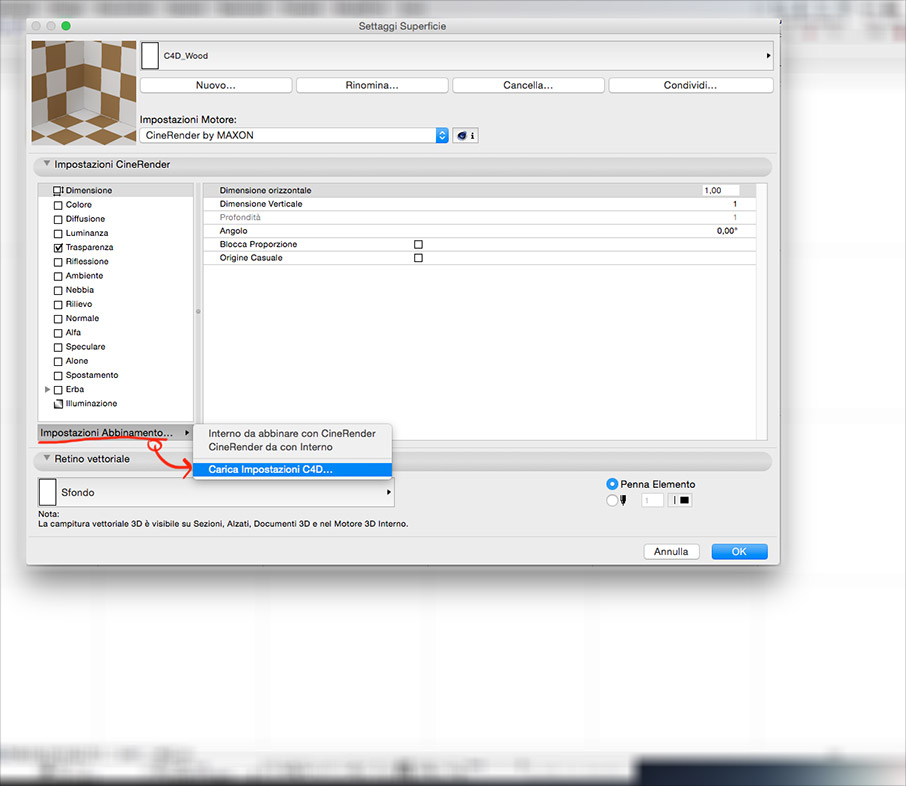 Caricare un materiale di Cinema 4D in ArchiCAD 18